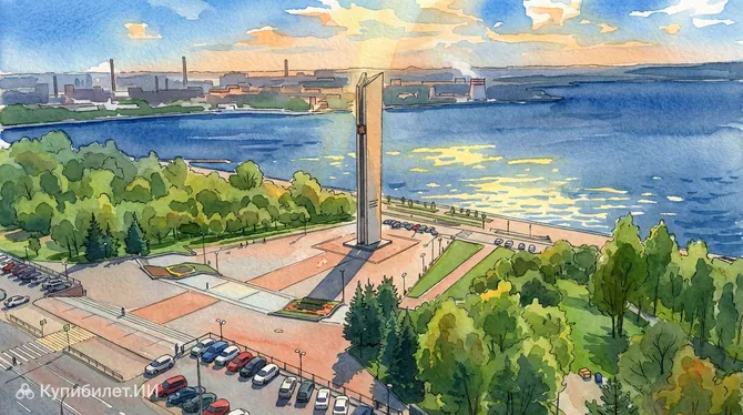 С берега широкого Ижевского пруда открывается один из самых узнаваемых видов, которыми гордится Россия — величественный силуэт двух стел, устремлённых в небо. Памятник «Навеки с Россией» (или монумент «Дружба народов») — это не просто архитектурное сооружение, а главный символ единства удмуртского и русского народов, воздвигнутый в городе Ижевск.