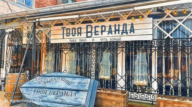 Заведение славится своей просторной и светлой верандой, которая и дала название ресторану.