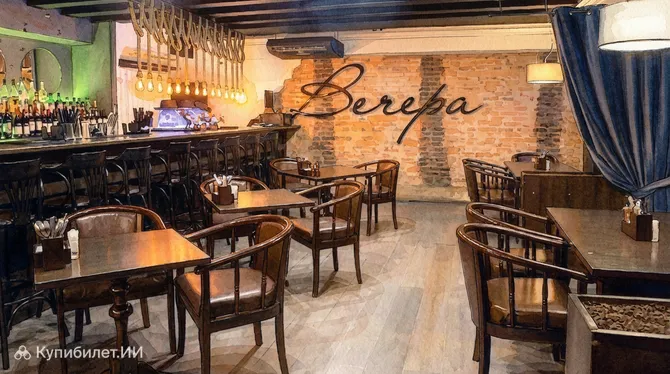 Гастрономическая концепция «Вечер» базируется на стиле фьюжн, объединяющем европейские традиции с авторским видением шеф-повара. Помимо вечерних программ, заведение пользуется популярностью благодаря ежедневным бизнес-ланчам. Это место идеально подходит как для романтических свиданий и камерных встреч, так и для проведения торжеств численностью до 100 гостей.