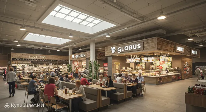 Ресторанная зона «Глобус» впечатляет своим масштабом. Она включает в себя как основной ресторан с разнообразным меню, так и просторный фуд-корт. Особого внимания заслуживает фуд-корт, рассчитанный на 822 посадочных места, что делает его одним из самых крупных подобных комплексов в торговых центрах Подмосковья. Здесь каждый найдет блюдо по вкусу и сможет отдохнуть после удачных покупок.