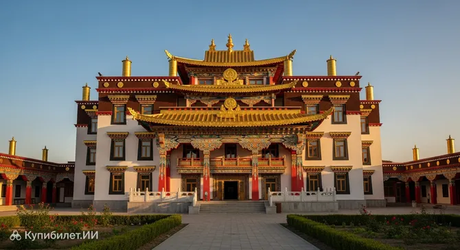 Храм, построенный в рекордно короткие сроки в конце 1990-х годов, быстро стал главным религиозным центром республики. Здесь располагается резиденция представителей Далай-ламы XIV, что подчеркивает высокий статус объекта. Посетителей привлекает не только его духовная значимость, но и эстетическое совершенство: ослепительно белые стены здания в сочетании с золотыми элементами декора создают атмосферу умиротворения и чистоты.