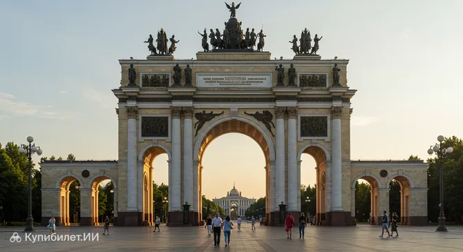 Главная арка входа ВДНХ — это монументальное сооружение и один из самых узнаваемых символов Москвы. Построенная в 1954 году по проекту архитектора Иннокентия Мельчакова, она служит парадным входом на территорию Выставки достижений народного хозяйства и является выдающимся образцом стиля сталинский ампир. Это не просто входная группа, а настоящая триумфальная арка, символизирующая достижения страны.