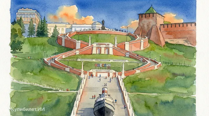 Этот памятник — не просто дань памяти великому человеку, но и центральный элемент одного из красивейших архитектурных ансамблей города. Он расположен на Верхневолжской набережной, рядом с Георгиевской башней кремля. Именно отсюда берет свое начало знаменитая Чкаловская лестница, каскадом спускающаяся к самой Волге. Благодаря своему расположению, место стало главной смотровой площадкой города, откуда открываются захватывающие дух панорамные виды на заволжские дали.