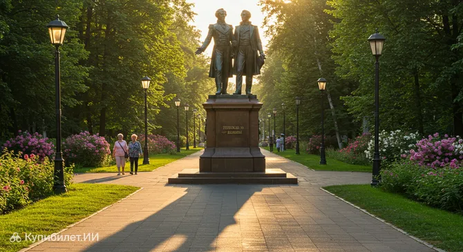 Нельзя обойти вниманием и уникальный Памятник Пушкину и Крылову. Эта скульптурная композиция, объединяющая двух великих русских литераторов, является одной из визитных карточек города. Памятник привлекает внимание своей оригинальностью и вызывает интерес у туристов, желающих узнать больше об истории и культурных связях Пушкино. Это отличное место для памятных фотографий и размышлений о вкладе этих выдающихся личностей в русскую культуру.