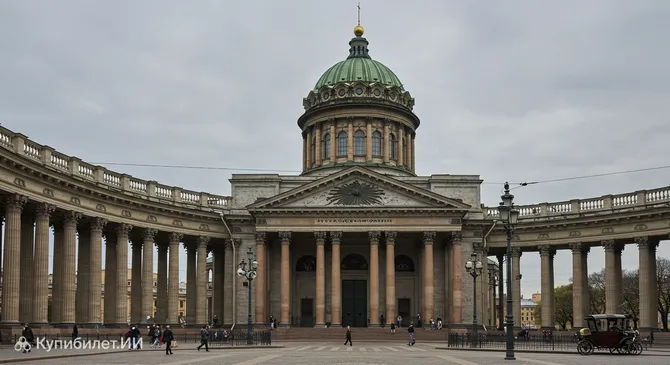 Главная особенность собора, которая делает его мгновенно узнаваемым, — это грандиозная полукруглая колоннада из 96 колонн, раскрывающаяся в сторону Невского проспекта. Построенный в стиле ампир, храм должен был по замыслу императора Павла I напоминать собор Святого Петра в Риме, что придало ему имперское величие и европейский размах. Это величественное сооружение является настоящим шедевром, созданным архитектором Андреем Воронихиным.