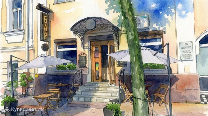 Интерьер бара продуман до мелочей: небольшой зал с оригинальным декором создает камерную атмосферу, идеально подходящую как для дружеских посиделок, так и для спокойного ужина. Одной из самых запоминающихся деталей является подача счета в старых книгах Владимира Маяковского, что мгновенно погружает гостей в интеллектуально-богемный контекст заведения.