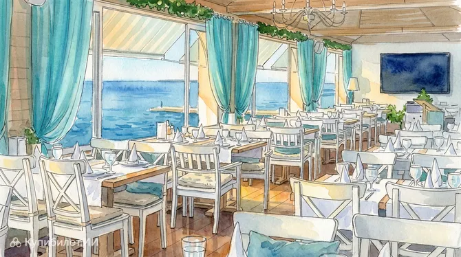 Интерьер заведения выполнен в светлых тонах с использованием натурального дерева, лазурных акцентов и морской тематики, что создает ощущение легкости и тепла. Ресторан в стране Россия специализируется на балканской, черноморской и европейской кухнях, а его главной гордостью являются свежайшие морепродукты и рыба, которые шеф-повар Кирилл Соколенко превращает в настоящие кулинарные шедевры.