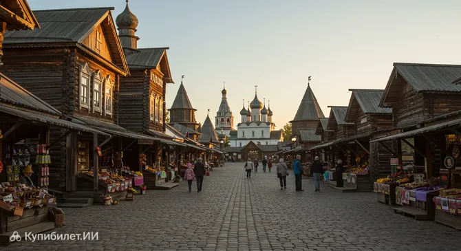 Торговые ряды в Суздале — это не просто здание, а настоящий символ города и выдающийся исторический архитектурный комплекс, расположенный в самом его сердце. Построенные в стиле ампир, они заметно выделяются на фоне традиционной застройки древнего Суздаля, придавая центру города особую торжественность и монументальность. Длинная галерея с изящными арками, чередующимися с парными колоннами, сразу привлекает внимание путешественников, прибывающих в этот уголок России.
