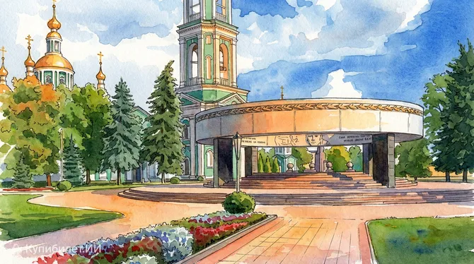 В самом сердце города Тамбов, на исторической Соборной площади, возвышается величественный Мемориал Вечный огонь. Это знаковое место для всей страны Россия, посвященное памяти тамбовских воинов, отдавших жизни в годы Великой Отечественной войны. Архитектурная композиция впечатляет своей монументальностью: массивное светло-серое кольцо, украшенное бронзовым лавровым фризом, покоится на четырех гранитных колоннах, каждая из которых олицетворяет год тяжелых испытаний.