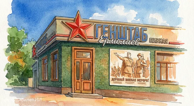 Представьте себе место, где суровая военная эстетика встречается с сибирским гостеприимством — именно так можно описать «ЕрмолаевЪ Генштаб». Это популярный тематический гриль-паб, ставший одной из гастрономических достопримечательностей города Тюмень, Россия. Заведение входит в известную местную сеть «ЕрмолаевЪ», которая славится своим купеческим размахом и вниманием к деталям.