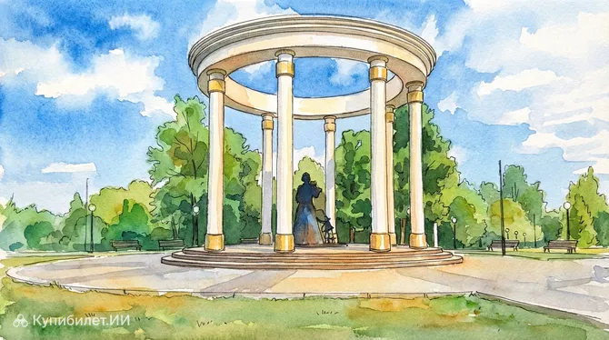 Центральным элементом памятника является бронзовая статуя высотой 2,4 метра. Хрупкая женская фигура в платье эпохи XIX века установлена внутри классической белоснежной ротонды. Образ получился собирательным: в нем читается и благородство, и печаль, и непреклонная решимость. Скульптура кажется почти живой, словно она замерла в движении под сводами своей беседки.
