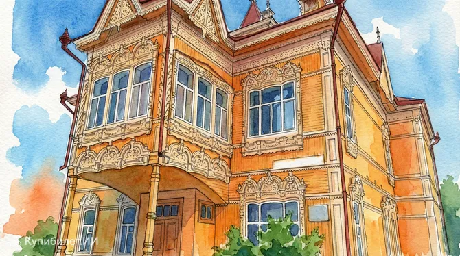 Здание поражает своим уникальным декором в стиле эклектики. Главным украшением фасада являются резные жар-птицы, венчающие крышу и наличники окон. Сложная резьба, обилие эркеров и декоративных свитков создают удивительный кружевной эффект, который кажется особенно эффектным в солнечную погоду. Несмотря на свой почтенный возраст и статус объекта культурного наследия федерального значения, дом остается жилым, сохраняя тепло и уют настоящей городской усадьбы.