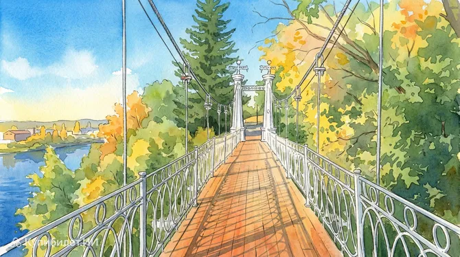Это изящное сооружение, возведенное на стальных канатах, по праву считается «сердцем» парка. Его ажурные перила и легкая конструкция создают атмосферу воздушности, а само место стало настоящим магнитом для тех, кто ищет вдохновения и красоты в стране Россия.