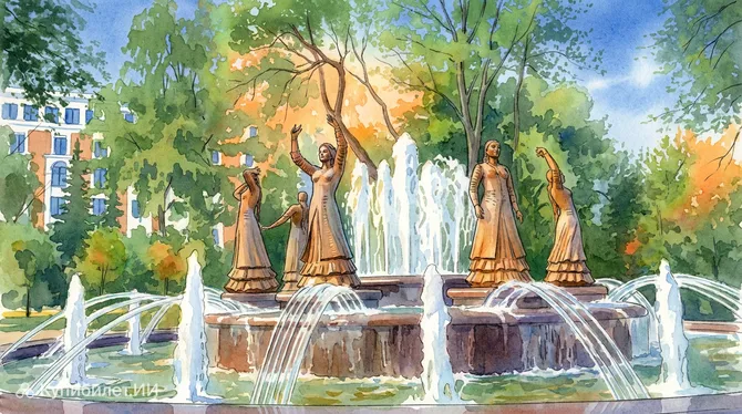 Фонтан «Семь девушек» — это одна из самых ярких и запоминающихся достопримечательностей Уфы, столицы Республики Башкортостан в России. Расположенный в Театральном сквере в самом центре города, он по праву считается самым большим фонтаном не только в Уфе, но и во всей республике. Это великолепное светомузыкальное сооружение, где потоки воды танцуют в такт музыке, подсвеченные разноцветными огнями, создавая поистине волшебное зрелище.