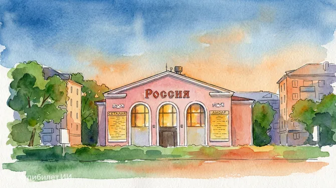 Кинотеатр Россия. Иллюстрация.