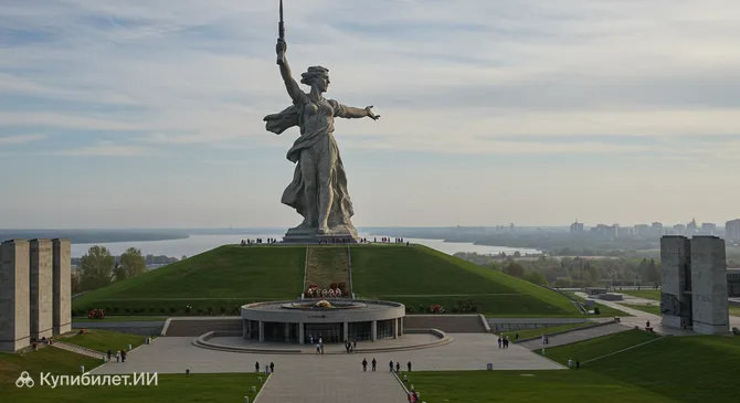 Важно понимать, что Мамаев курган — это не просто отдельная статуя, а продуманный архитектурный ансамбль. Он включает в себя несколько композиционных элементов, которые последовательно ведут посетителя вверх по склону холма. Путь начинается от входной площади, проходит через аллею тополей, стены-руины, площадь Героев и Зал Воинской Славы, рассказывая историю мужества и скорби. Каждая скульптура и каждый барельеф являются частью единого повествования о героизме защитников Сталинграда.