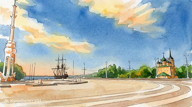 Архитектурный ансамбль Адмиралтейской площади впечатляет своим величием и исторической насыщенностью. Здесь возвышается ростральная колонна, символизирующая морские победы, и величественная триумфальная арка, которая служит напоминанием о выходе России к морю. Особое место занимает Успенский Адмиралтейский храм, возведенный еще в конце XVII века и являющийся свидетелем зарождения российского флота.