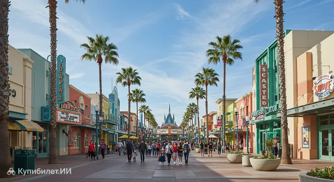 Дистрикт Даунтаун Дисней (Downtown Disney District) — это оживлённая пешеходная зона, расположенная в самом сердце курорта Disneyland Resort в городе Анахайм, США. Она служит связующим звеном между двумя знаменитыми парками — Disneyland Park и Disney California Adventure, представляя собой крупный развлекательный и торговый район. Это место, где волшебство Диснея доступно каждому, ведь для входа сюда не требуется билет в парк.