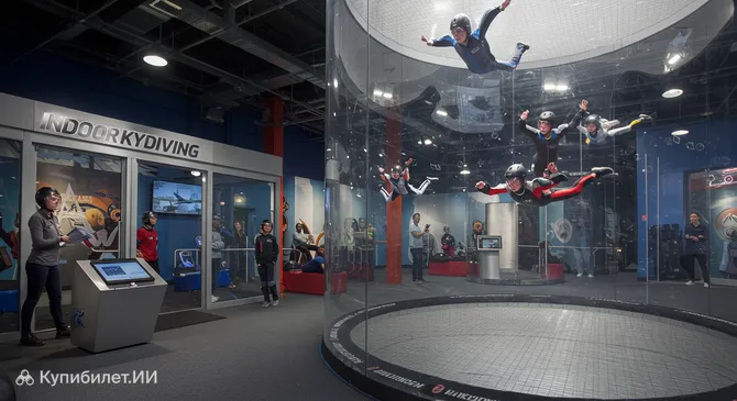 Сердцем комплекса является вертикальный ветровой туннель диаметром 4,3 метра. Благодаря уникальной технологии рециркуляции воздуха от SkyVenture, здесь создается стабильный поток, позволяющий парить на высоте нескольких метров. Этот аттракцион в США стал настоящим хитом: он подходит для всех искателей приключений в возрасте от 3 до 103 лет, не требуя при этом никакой специальной физической формы.