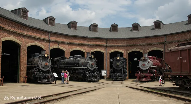 Сердцем музейного комплекса является впечатляющее историческое круговое железнодорожное депо, построенное также в 1829 году. Изначально служившее для обслуживания составов, со временем оно перестало вмещать растущие локомотивы и было преобразовано в музейное пространство. Внутри и на прилегающих путях представлена обширная коллекция локомотивов и вагонов, многие из которых относятся к самым ранним периодам американского железнодорожного дела. Вы увидите настоящих гигантов из стали, каждый со своей уникальной историей.