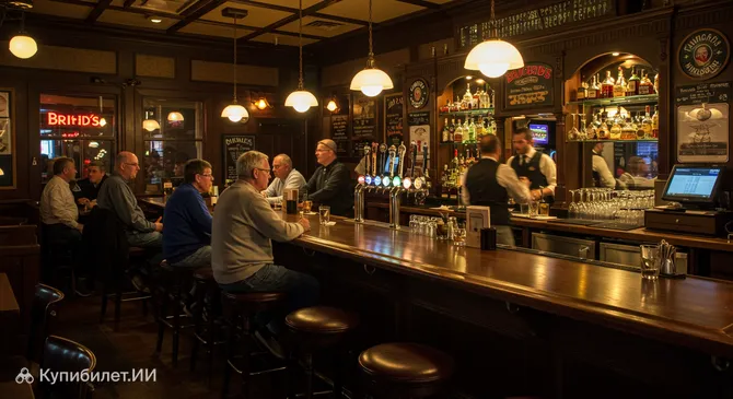 Интерьер заведения выполнен в классическом стиле: массивные деревянные панели, уютные ниши для уединенных бесед и множество интересных деталей, напоминающих о культуре Ирландии. С рейтингом 4.5 на основе сотен отзывов, паб считается одним из лучших мест в городе для тех, кто ценит качественное обслуживание и расслабленную обстановку.