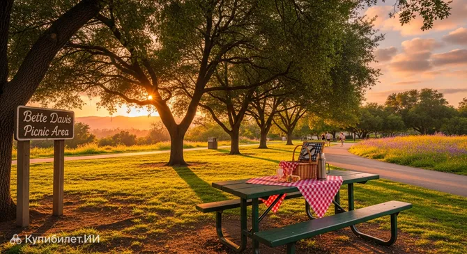 Свое название локация получила в честь прославленной актрисы Бетт Дэвис, чье имя неразрывно связано с историей американского кинематографа. Зона отдыха предлагает посетителям не только удобные площадки для посиделок, но и прекрасные виды на окружающую природу и реку, создавая ощущение спокойствия в самом сердце урбанизированного региона.