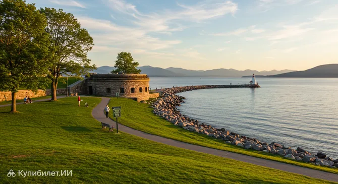 Представьте себе уютное зеленое пространство, раскинувшееся на высоком берегу, откуда открывается захватывающая панорама. Бэттери-парк — это исторический и общественный центр города Берлингтон, занимающий около 6 гектаров земли в США. Это место гармонично сочетает в себе мемориальную значимость и непринужденную атмосферу городского курорта.