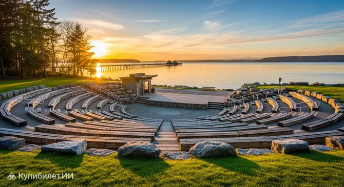На живописном берегу залива Семиахму Бэй в городе Блейн, США, расположилось одно из самых уютных мест для отдыха — Амфитеатр парка Блейн Марин. Это общественное пространство гармонично сочетает в себе природную красоту побережья и современную инфраструктуру для проведения культурных мероприятий под открытым небом.