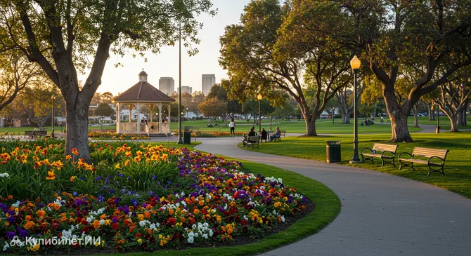 Парк Ральфа Б. Кларка очаровывает посетителей своими живописными ландшафтами и разнообразием природных зон. Здесь гармонично сочетаются ухоженные зеленые газоны, идеальные для отдыха на траве, тенистые аллеи, приглашающие на неспешные прогулки, и небольшое озеро, добавляющее прохлады и умиротворения. Такое разнообразие делает парк привлекательным для любителей природы и спокойного отдыха.