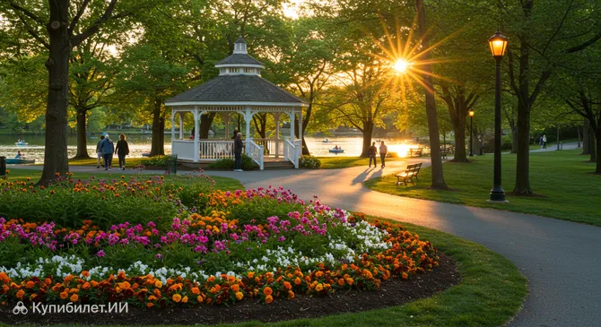 Парк славится своей просторной территорией с ухоженными зелеными зонами, создающими идеальную атмосферу для расслабления и наслаждения свежим воздухом. Здесь предусмотрена разнообразная инфраструктура: от дорожек для прогулок и бега до площадок для занятий спортом и уютных мест для пикников. Каждый найдет здесь занятие по душе, будь то спокойная прогулка или активные игры.