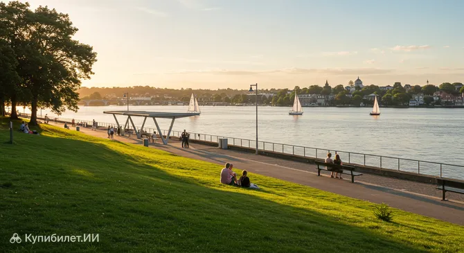 Расположенный, как следует из названия, на набережной, парк, скорее всего, может похвастаться живописными видами. Можно предположить, что здесь проложены удобные дорожки для неспешных прогулок и активных пробежек, есть ухоженные газоны, идеально подходящие для пикников или спокойного отдыха, а также скамейки, где можно перевести дух, любуясь окружающими пейзажами. Такие общественные пространства часто становятся излюбленным местом для семейного досуга, встреч с друзьями и проведения местных мероприятий.