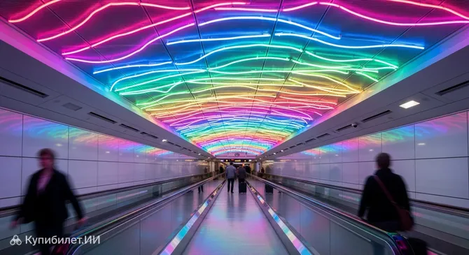 Для удобства путешественников на территории комплекса предусмотрено множество услуг: от стандартных магазинов и ресторанов до необычных опций, таких как зона для занятий йогой и художественные инсталляции. Например, в переходе между терминалами 1 и 2 расположена знаменитая световая инсталляция "Небесный предел" (The Sky's the Limit) — разноцветный неоновый тоннель, ставший визитной карточкой аэропорта. Транспортное сообщение с городом отлично развито: до центра Чикаго можно легко добраться на метро (Синяя линия), которое работает круглосуточно.