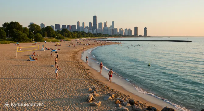Окунитесь в атмосферу безмятежности на самом масштабном общественном побережье Чикаго. Пляж Монтроуз — это просторная береговая линия с мягким золотистым песком, омываемая чистыми водами озера Мичиган. Это место гармонично сочетает в себе активный городской отдых и нетронутые уголки природы, предлагая гостям один из лучших видов на знаменитый чикагский скайлайн.
