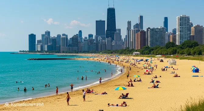На побережье величественного озера Мичиган расположился Пляж Оук-Стрит — одно из самых стильных и оживлённых мест отдыха в Чикаго. Этот песчаный оазис в самом сердце США привлекает гостей своей уникальной атмосферой, где современная городская архитектура встречается с бескрайней водной гладью.
