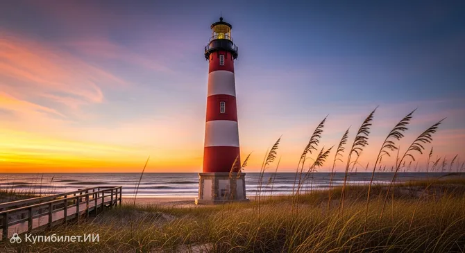Маяк Ассатиг — это величественное историческое сооружение, расположенное на живописном острове Ассатиг, неподалеку от уютного города Чикотиг в США. Построенный в 1867 году, он представляет собой коническую кирпичную башню высотой около 43 метров. Яркая красно-белая раскраска делает его легко узнаваемым символом побережья Виргинии и важным ориентиром для судов, проходящих мимо опасных мелей.
