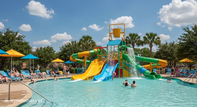 Особенность этого места в том, что оно представляет собой полностью автоматизированный сплэш-парк. Здесь нет необходимости нажимать кнопки или ждать очереди на вход — водные фонтаны, брызгалки и горки включаются сами по расписанию, создавая динамичную игровую среду. Это идеальное место для тех, кто ищет способ охладиться под жарким техасским солнцем абсолютно бесплатно.