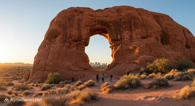Главная особенность «Дыры в скале» – это, конечно же, само сквозное отверстие. Поднявшись к нему по несложной тропе, посетители могут насладиться захватывающими панорамными видами на город Финикс и окружающие его пустынные пейзажи. Это место особенно популярно на закате, когда лучи уходящего солнца создают невероятную игру света и тени, проходя через отверстие в скале.