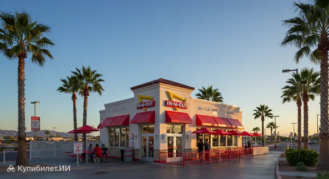 Ин-Н-Аут Бургер (In-N-Out Burger) – это не просто ресторан быстрого питания, а настоящая легенда американского юго-запада. Эта популярная региональная сеть специализируется на классических гамбургерах, и ее название, которое можно перевести как "Бургер в заведении и с собой", отлично отражает простую и удобную концепцию заведения, известную многим ценителям качественного фастфуда.