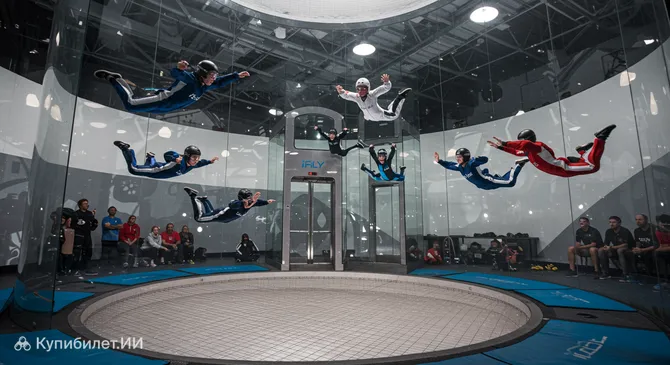 Этот аттракцион считается абсолютно безопасным и доступным для всех: летать здесь могут даже дети от 3 лет. Никаких специальных навыков не требуется — опытные инструкторы сопровождают каждого гостя на протяжении всего процесса. Это уникальная возможность почувствовать себя парашютистом в контролируемой и комфортной обстановке.