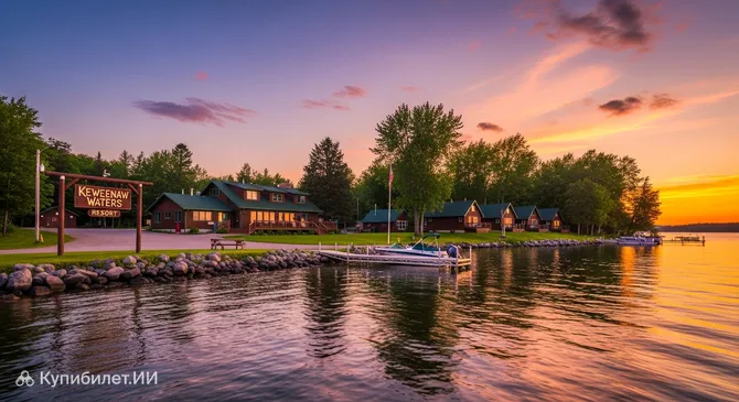 Киуино Уотерс Резорт — это современный и уютный комплекс для отдыха, раскинувшийся на 25 акрах живописной земли вдоль водного пути Кивино в городе Ганкок. Это место в штате Мичиган, США, идеально подходит для тех, кто ищет уединения на природе, не отказываясь от домашнего комфорта и высоких стандартов обслуживания.