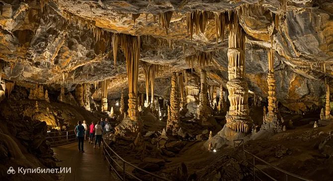 Протяженность исследованных ходов Пещер Такаличи составляет около 1,6 километра (примерно одна миля). Внутри вас ждет захватывающее зрелище: пещеры изобилуют разнообразными карстовыми образованиями, включая величественные сталактиты, растущие сверху вниз, и сталагмиты, поднимающиеся им навстречу с пола. Каждый зал поражает своей уникальной красотой и атмосферой, созданной тысячелетиями неустанной работы воды.