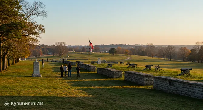 Национальный военный парк Геттисберга – это знаковое историческое место и крупный мемориальный комплекс, расположенный в городе Геттисберг, штат Пенсильвания, США. Парк увековечивает память об одном из самых значимых и кровопролитных сражений в американской истории — битве при Геттисберге, произошедшей в июле 1863 года во время Гражданской войны. Это событие стало поворотным моментом в конфликте и оказало огромное влияние на дальнейшую судьбу страны.