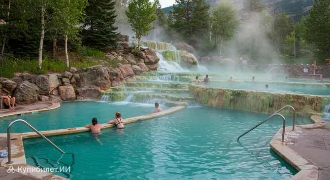 Горячие источники Айрон-Маунтин (Iron Mountain Hot Springs) — это популярный оздоровительный курорт, расположенный на живописном берегу реки Колорадо в городе Гленвуд-Спрингс, США. Это место привлекает путешественников, желающих расслабиться и восстановить силы в бассейнах с термальной водой, наслаждаясь при этом великолепными видами на окружающие горы.
