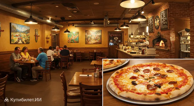 Пиццерия удобно расположена на главной улице в центре города, что делает ее идеальной остановкой для обеда или ужина во время осмотра достопримечательностей. Работающее в штатном режиме, заведение также предлагает услуги доставки и заказа еды навынос, что очень удобно для активных путешественников.