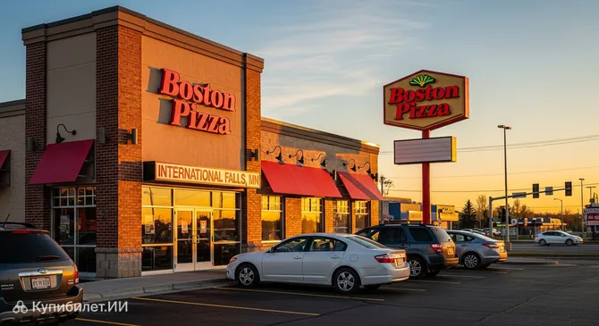 Пицца-бар — это популярное место отдыха в районе приграничного города Интернэшнл-Фолс, представляющее собой часть известной сети Boston Pizza. Заведение гармонично сочетает в себе уютный семейный ресторан и энергичный спортивный бар, что делает его универсальной точкой притяжения как для местных жителей, так и для туристов, путешествующих по северу США и прилегающим территориям.