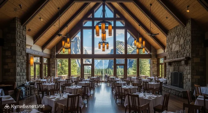 Представьте себе ужин в окружении величественных гранитных скал, где за панорамными окнами шумит один из самых высоких водопадов в мире. «Горная Комната» (The Mountain Room) — это не просто ресторан, а знаковое место для гурманов в поселке Йосемит-Виллидж. Находясь на территории знаменитого национального парка в США, это заведение предлагает гостям уникальное сочетание высокой кухни и первозданной природы.