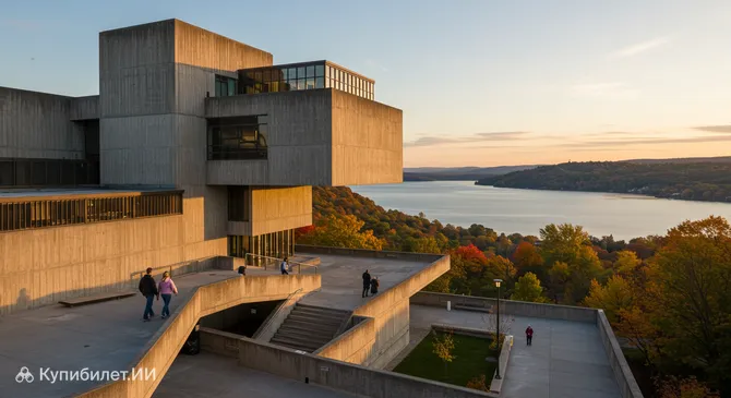 Представьте себе массивное бетонное здание, напоминающее своей необычной формой гигантскую швейную машинку, которое возвышается над живописными ландшафтами. Это Музей искусств имени Герберта Ф. Джонсона — одно из самых ярких архитектурных украшений, которое подарила миру США и университетская Итака. Здание, спроектированное знаменитым И. М. Пеем в стиле брутализма, расположено на холме, откуда открываются захватывающие виды на озеро Кайуга.
