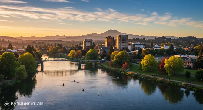 Юджин — это живописный город, уютно раскинувшийся в изумрудной долине реки Уилламетт на западе штата Орегон, в одном из самых зелёных регионов США. Здесь, среди холмов, лесов и бескрайних парков, царит неповторимая атмосфера свободы, творчества и гармонии с природой, что делает его идеальным местом для прогулок, велопоездок и отдыха на свежем воздухе.
