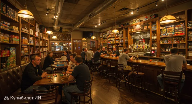 Это не просто питейное заведение, а настоящее социальное пространство, где на полках хранятся сотни коробок с играми: от вечной классики до самых редких современных стратегий. Здесь создана уникальная атмосфера, в которой звон бокалов гармонично смешивается со стуком кубиков и азартными обсуждениями тактики очередного хода.