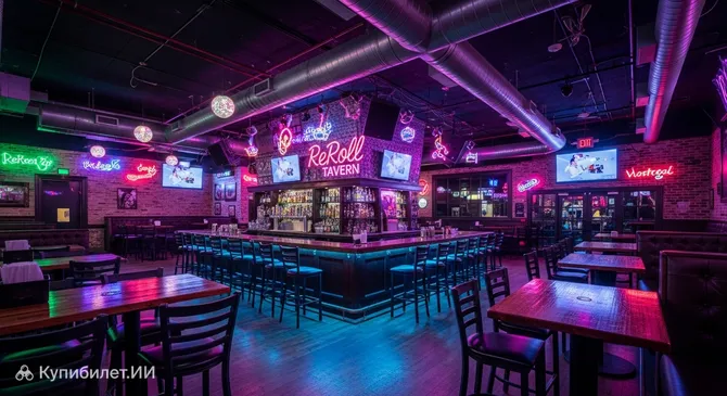 В самом сердце района North Kansas City расположилось уникальное пространство для любителей игр и гик-культуры — РеРолл Таверна. Это не просто бар, а настоящий рай для фанатов настолок в городе Канзас-Сити, где атмосфера фэнтези встречается с современным комфортом. Заведение объединяет под одной крышей огромную библиотеку из более чем 500 настольных игр, охватывающую всё: от бессмертной классики до редких современных стратегий.